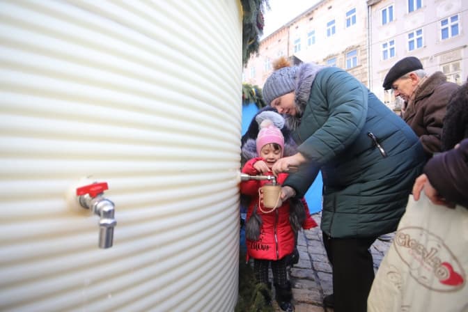 Після освячення води усі охочі можуть взяти її додому зі спеціального резервуару.