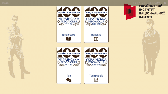 Український інститут національної пам’яті представив новий освітній проект – гру для смартфонів і планшетів, розроблену на основі настільної гри «Українська революція 1917-1921 років» для старшокласників, освітян, усіх, хто цікавиться історією.