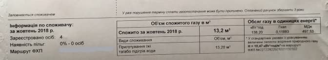 Платіжка за жовтень, де потрібно сплатити за 13,2 кубометрів газу