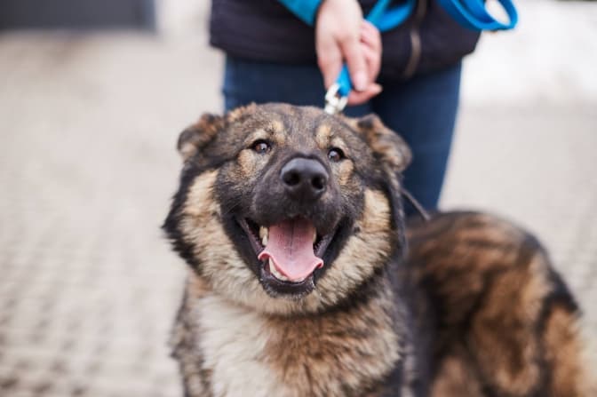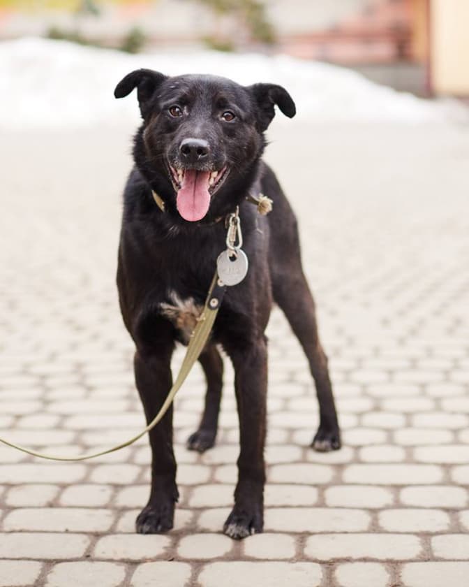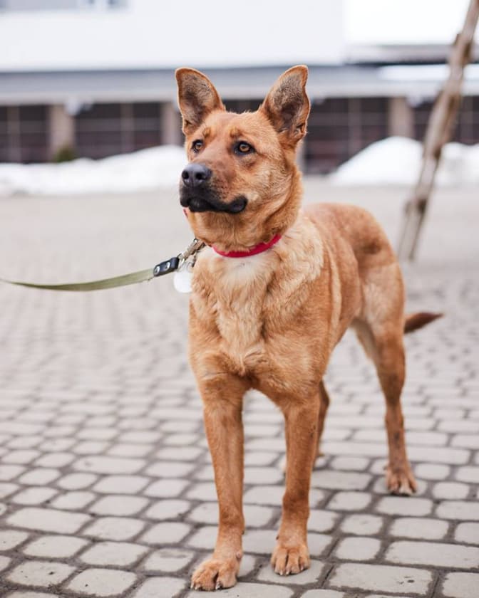 Молода собака Діна, соціалізована, гарно гуляє на повідку, слухняна та піддається навчанню. Може проживати в квартирі та стати другом і компаньйоном.