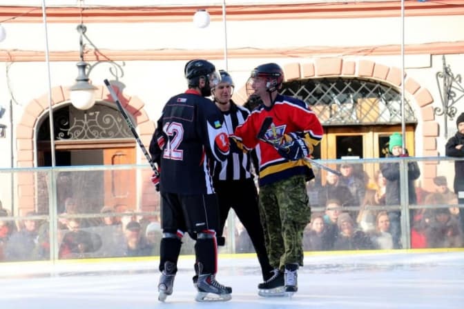 Святкування розпочали з хокейної гри на ковзанці на площі Ринок між хокейним клубом «Галицькі Леви» операцією «ЮНІФАЄР». На початку матчу оркестр Національної академії сухопутних військ імені гетьмана Петра Сагайдачного виконав український та канадський гімни. ПІсля гри всі охочі також могли спробувати себе у ролі хокеїстів.