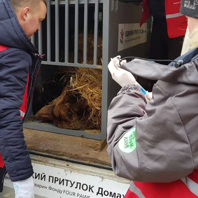 «Наша команда забрала притравлювальну ведмедицю Ласку. Після ретельного ветеринарного огляду ми помістили її у наш автомобіль, де вона тепер готова до своєї подорожі цілою Україною до нового дому. Після приїзду ведмедиця отримає всю медичну допомогу та турботу, яку вона потребує для того, щоб відновитись після довгих років жахів, які вона пережила», – кажуть в «Домажирі».