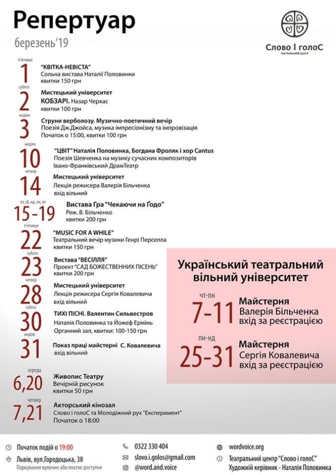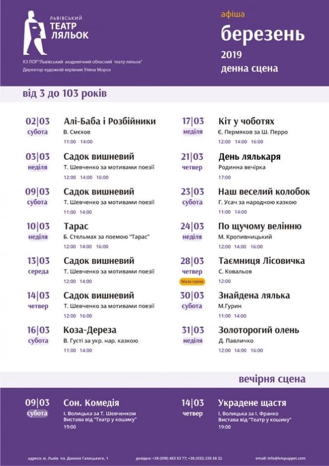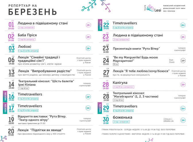 Детальніше про кожну з вистав – на сайті Театру Лесі.