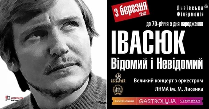 Концерт до 70-річчя геніального Володимира Івасюка. Серед композицій – широко відомі твори композитори і майже невідомі його роботи. Виконуватимуть їх вихованці Львівської музичної академії.