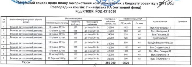 Крім цього, ккоштом райадміністрації запланували відремонтувати дев’ять дитячих майданчиків, модернізують п’ять ліфтів, облаштують сквер Марії Заньковецької, громадський простір на Польовій та укріплять підпірну стінку на Березовій.