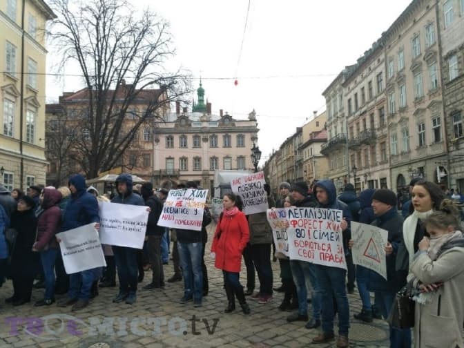 Згодом до пікетувальників на вулиці вийшли заступник міського голови з питань розвитку Андрій Москаленко та очільник департаменту «Адміністрація міського голови» Євген Бойко.