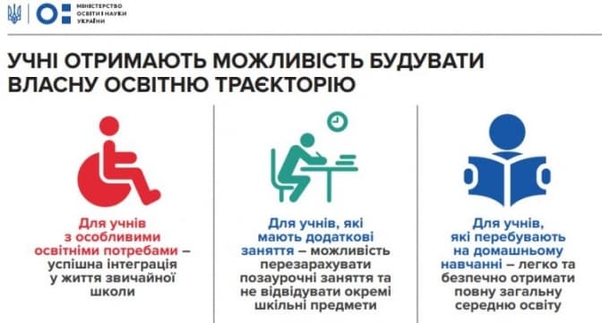 Згідно з документом, школярі зможуть сформувати індивідуальний навчальний план. Це допоможе, наприклад, учням з інвалідністю успішно інтегруватися у життя звичайної школи. Для дітей, які навчаються поза школою (наприклад, займаються спортом чи музикою), буде можливість зарахувати отримані не в закладі знання. Учні, які вчаться вдома, зможуть зарахувати свої навчальні досягнення та отримати документ про повну загальну середню освіту.