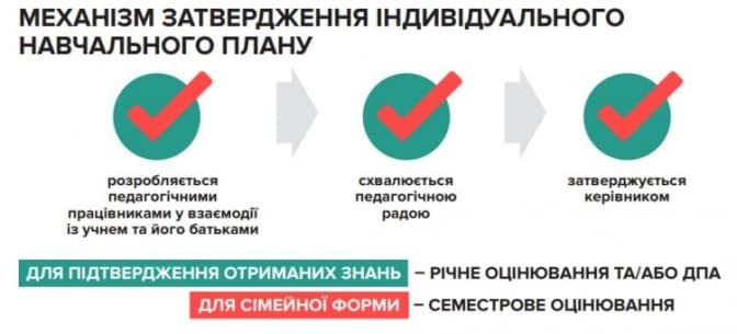 Аби отримати індивідуальний навчальний план, батькам необхідно буде звернутися із заявою до школи. План пишуть спільно педагоги, батьки та учень, схвалює педрада та затверджує директор.