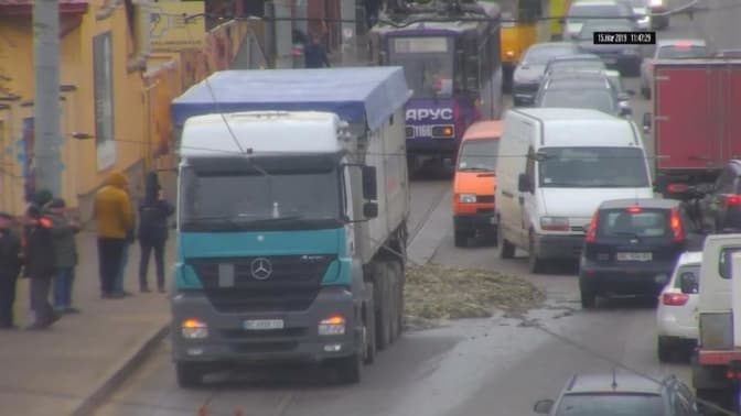 Сьогодні, 15 березня, на вулиці Промисловій – Городницькій у Львові з вантажівки на трамвайну колію висипались відходи. Трамваї №6 тимчасово змінили схему руху. Про це в спільноті Варта-1 повідомив депутат ЛМР Ігор Зінкевич.