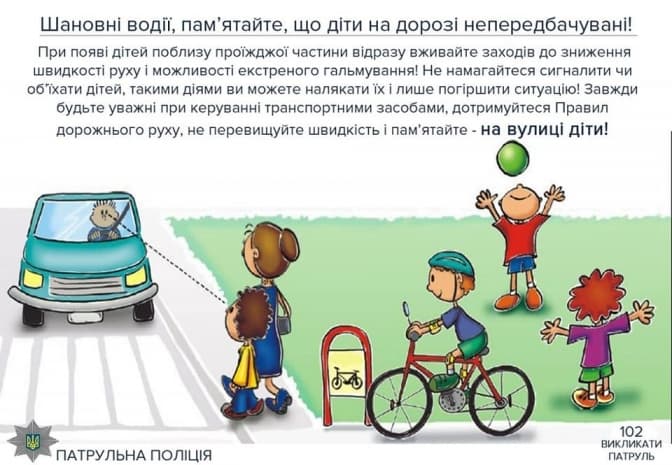 «Пам'ятайте, що діти дуже рухливі та імпульсивні, багато з них не вміють передбачати небезпеку та правильно оцінювати дорожню ситуацію», – кажуть в поліції.