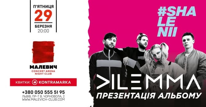 Вперше у Львові зіграє український паті-гурт Dilemma з презентацією нового альбому Shalenii. Після концерту клуб запрошує всіх відвідувачів залишитися на гучну вечірку.