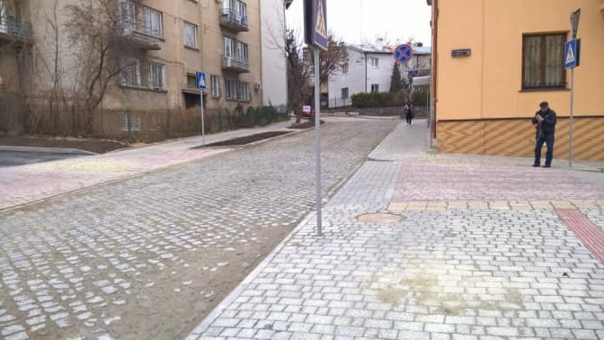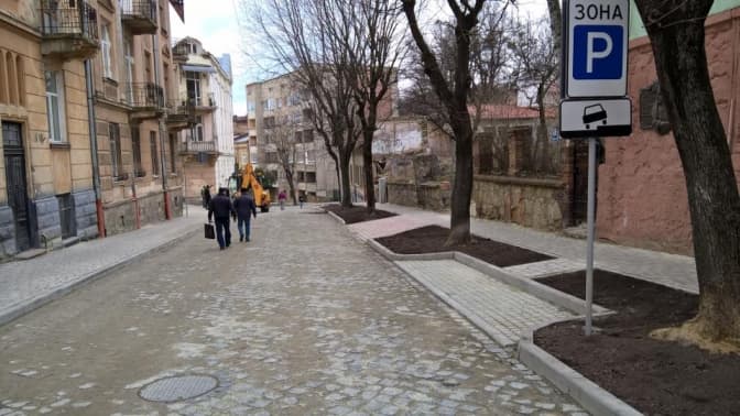 Проїжджу частину вулиці замостили бруківкою, яку встановили діагонально, що має зменшити рівень шуму та вібрацій. У міждеревному просторі частково влаштували паркувальні лоти, аби вирішити проблему з роз’їздом авто.