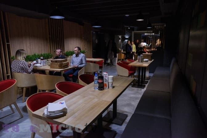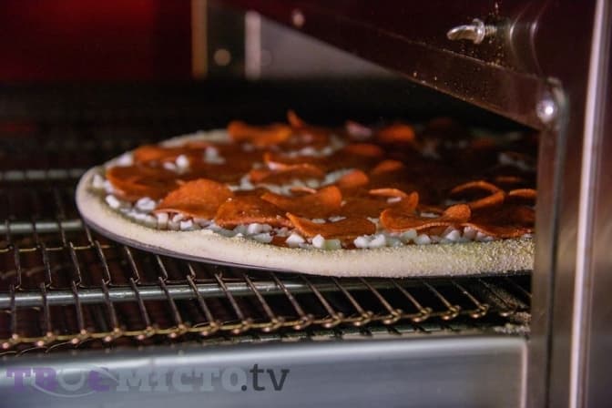 Саме приготування займає не більше десяти хвилин разом із упакуванням. Решта 20 хвилин – доставка. Піцу випікають у печі конвеєрного типу шість хвилин при температурі 242 градуси. У закладі є два поверхи. На другому, крім столиків для відвідувачів, працює дитяча кімната та спеціальні місця з планшетами.