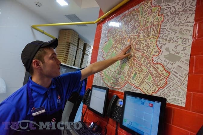 «Операційний цикл приготування піци побудований таким чином, аби ми могли доставити її за півгодини. Локаційно одна зона доставки – не більше двох кілометрів від розташування ресторану. Кур’єра обираємо за логікою, яким транспортом краще зробити доставку у той чи інший район, зважаючи на затори», – каже директор ресторану на проспекті Шевченка, 5 Богдан Дундер.