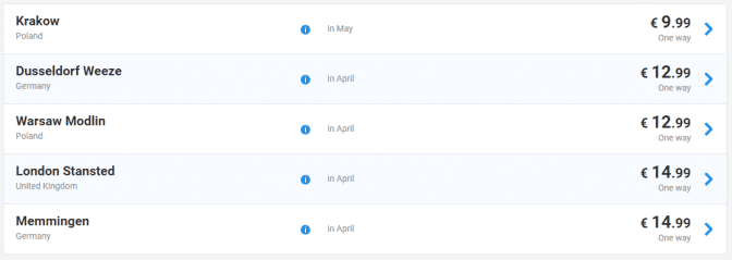 Зі Львова за 9 євро у травні можна полетіти до Кракова, за 13 євро у квітні можна відправитись до Дюссельдорфа та Варшави, за 15 євро – до Лондона та Меммінгена. Придбати квитки всіма напрямками Ryanair зі Львова можна на сайті авіакомпанії.