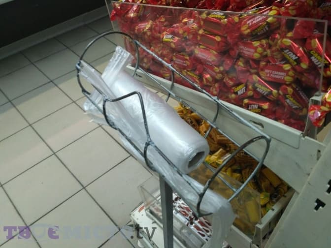 У супермаркеті мережі «Близенько» немає альтернативи поліетилену у відділах солодощів, овочів та фруктів, але на касі пропонують багаторазові торбинки та паперові пакети.