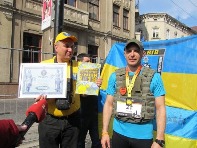 «Рекорд зафіксовано представником Національного реєстру рекордів України та внесено до Книги рекордів України. Аби пробігти 21 км в бронежилеті, Зореслав тренувався три місяці. Водноч боєць має за плечима досвід здолання двох напівмарафонів та одного повного марафону. Рекорд Зореслав присвятив світлій пам'яті своєї мами», – написала вона.