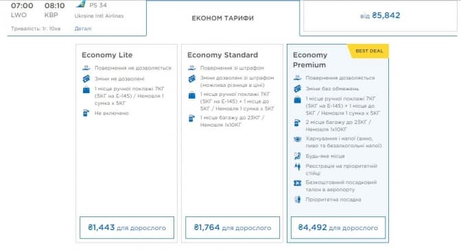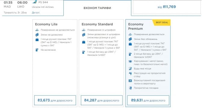 Авіакомпанія почала використовувати три нові підтарифи: Economy Light, Economy Standard і Economy Premium. Їх правила відрізняються залежно від того, який рейс – середньомагістральний чи далекомагістральний.