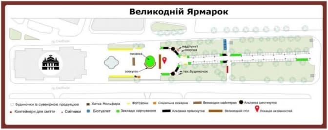 Традиційно ярмарок розташують на центральній пішохідній алеї проспекту від пам’ятника Шевченкові до оперного театру. У робочі дні ярмарок працюватиме з 1:00 до 22:00, а у вихідні та святкові дні – з 10:00 до 23:00.