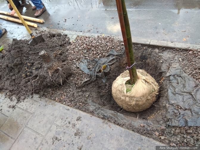 У Стокгольмі я підгледів, що дерева можна висаджувати у бетонні горщики, які відділяють коріння від комунікацій, але такий спосіб висадки підходить лише для дерев зі стрижневою кореневою системою. Подібну штуку ми потім зробили на вулиці Курбаса.