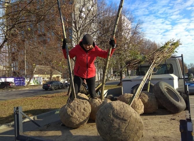 Доставка дерев із розсадника на місце висадки — окрема логістична операція. Якщо дерев багато і коми важкі, дуже помічною буде вантажівка з маніпулятором, але ціна такої послуги — близько 4-5 тис. грн.