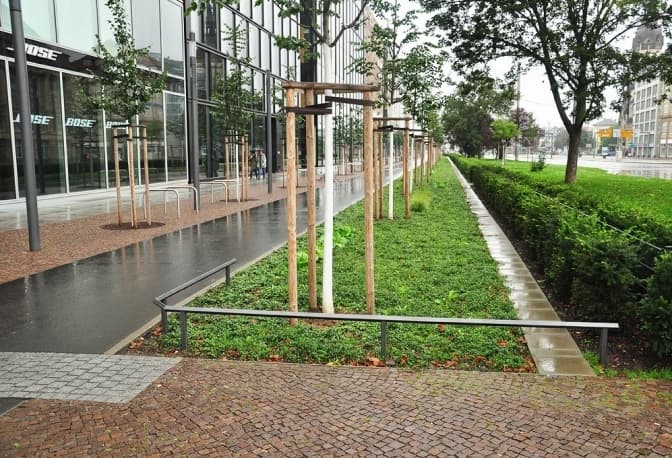 Якщо ви висаджуєте дерево на вулиці серед мощення, варто закласти у яму дренажну трубу, щоб воді та повітрю було легше потрапляти вглиб ґрунту. Якщо цього не зробити, дерево може почати шукати воду самостійно, піднімаючи плитку чи асфальт довкола себе корінням.