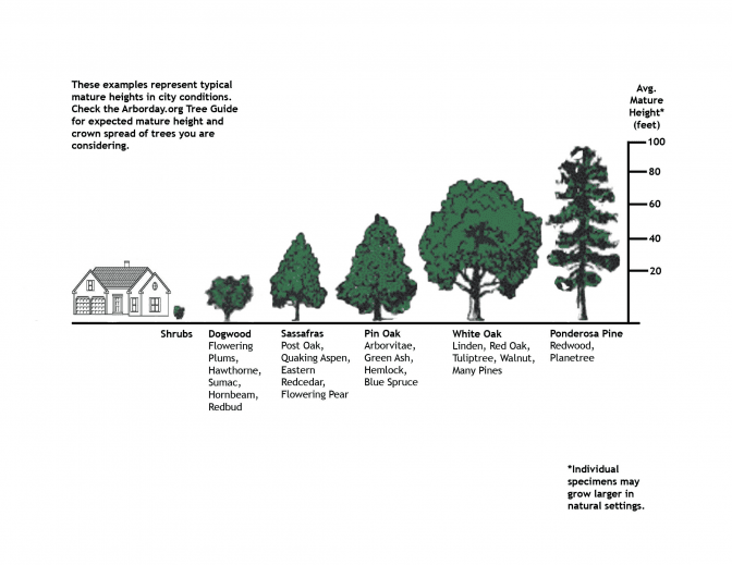 Пам’ятайте про розмір дерев у дорослому віці: не варто садити їх надто близько до бордюрів чи одне до одного, інакше з часом вони почнуть ці бордюри руйнувати та боротися між собою за місце під сонцем.