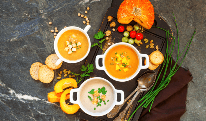 Мої фаворити серед супів – крем-суп з гарбуза та нуту, а також суп з червоною сочевицею.