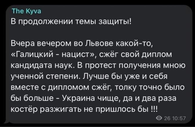 Ілля Кива написав у себе в Телеграм-каналі про спалення мною диплому:
