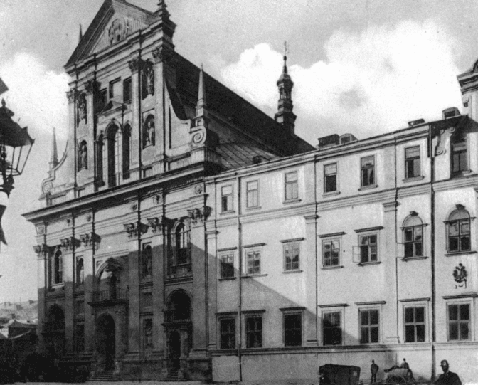 Упродовж 1610-1630 років італійський архітектор, який був ченцем ордену єзуїтів Джакомо Бріано, будує у Львові чудовий храм, який зберігся нам майже у первісному стані. Втрачена була дзвіниця-вежа, яка свого часу була однією з найвищих у місті і сягала 100 ліктів у висоту. Всередині 19 століття вежу розібрали і разом з нею були втрачені годинник і дзвони, які були окрасою храму.