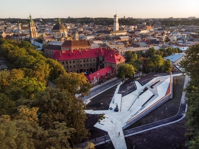 Наступне місце з прекрасними краєвидами, але дуже трагічною історією – це Меморіал Героям Небесної Сотні у Львові, розташований на перетині вулиць Максима Кривоноса та Замкової. Урочисте відкриття першої частини Меморіалу відбулося у День Державного Прапора України, 23 серпня 2019 року.