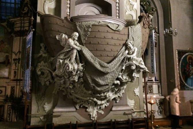 Цікавинками храму є неймовірної краси катедра-амвон у вигляді човна апостола Петра, з човна звисає невід, який підримують апостоли Петро і Павло.