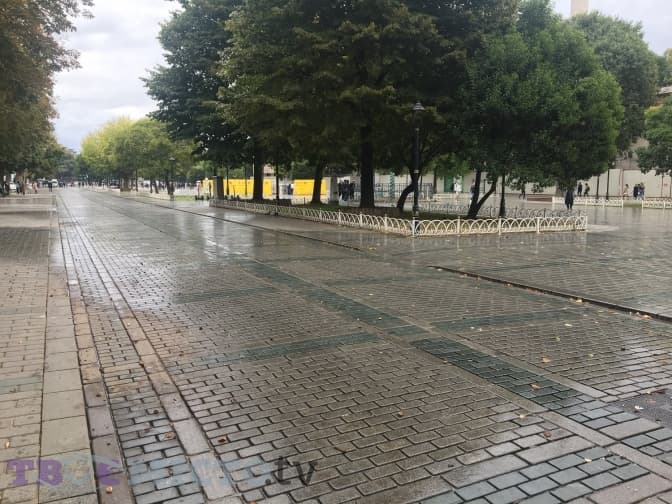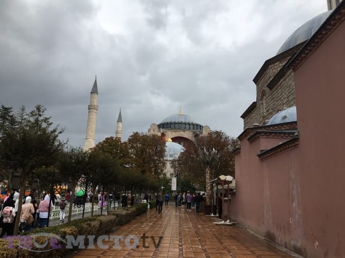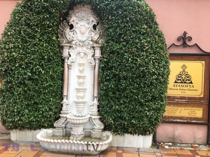 Недалеко від лазні розташований Собор Святої Софії, або як називають його турки – Айя-Софія. До нього веде невелика алея. Храм будували як собор для християн, але після завоювання Константинополя його перетворили у мечеть. На початку ХХ століття його визнали музеєм. Проте у 2020 році нинішній президент Туреччини Ердоган скасував попередній указ, тож святиня знову стала діючою мечеттю.