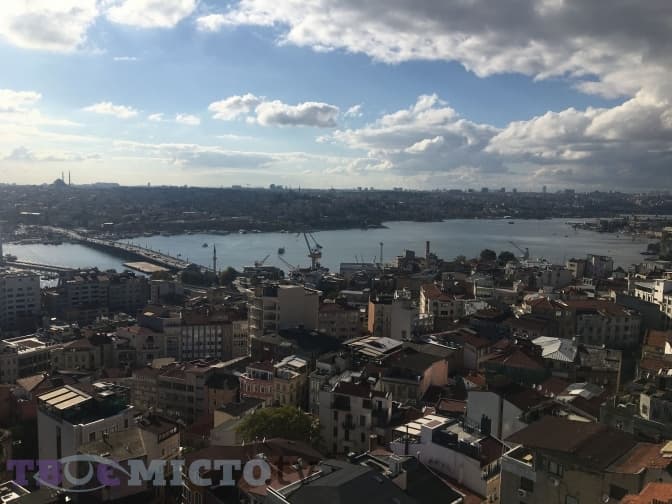 Згори вежі можна побачити, як мости через Босфор з’єднують дві частини міста. Один з них – Галатський. Він є двохрівневим – внизу відпочинкова зона, а зверху їздить транспорт. Практично цілодобово уздовж перил вишиковуються в довгу шеренгу рибалки, які чекають на свій улов.