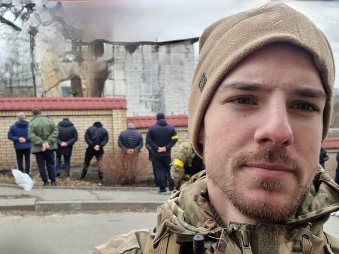 Останнє фото: Роман Ратушний стоїть перед групою полонених російських окупантів.