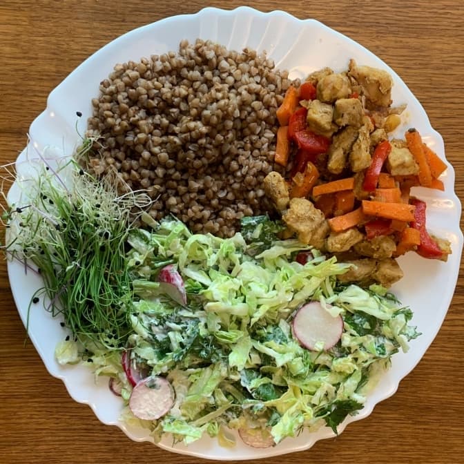 Для тих, хто навпаки переїдає, радила б збалансувати основні прийоми їжі (сніданок, обід та вечерю) за методом «Здорова тарілка». Це коли: