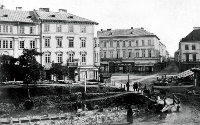 Роботи з замкнення Полтви на пл. Фердинанда (пізніше пл. Маріацька, пл. Міцкевича), 1861-1871 рр. Фото NAC