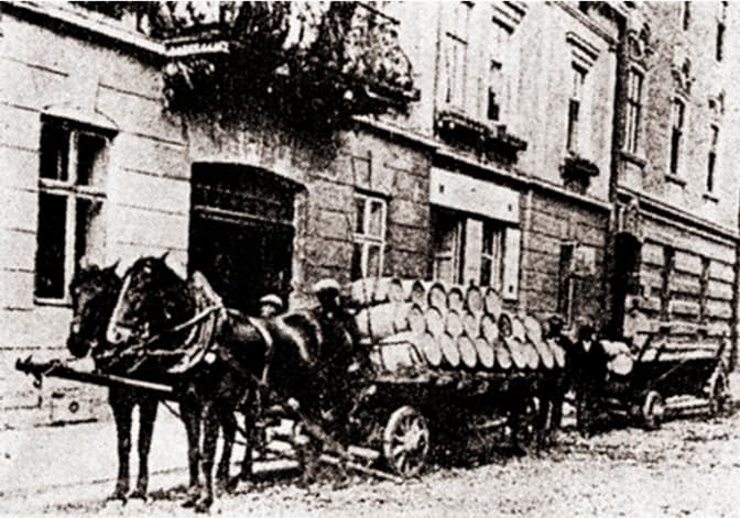 Бочки з експортним маслом перед станцією у Львові (1926 р.)