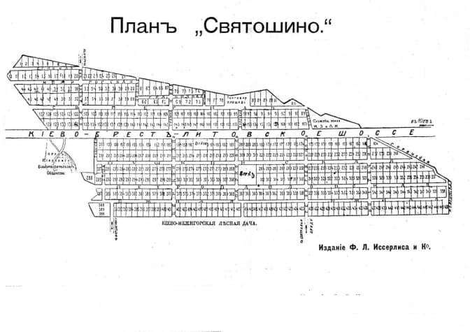 План схема дачного селища Святошин, з книги Ісерлиса - Дачник, 1911 рік