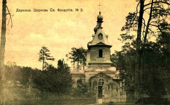 У селищі Нова Дарниця на початку ХХ століття збудували церкву. Дослідники датують появу храму Феодосія Чернігівського 1908-1909 роками. Це була дерев’яна споруда, обкладена цеглою. Хрещата у плані, вона завершувалася банею на восьмигранному барабані, над притвором якого височіла дзвіниця з шатровим завершенням. Барабан бані та дзвіниця не були обкладені цеглою.