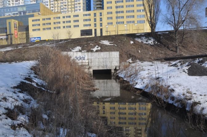 Річка Дарниця в районі Харківського шосе поблизу Інституту хімії. Фото 2015 року