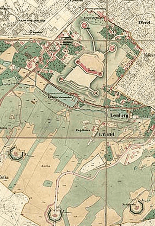 Іл. 3. Комплекс укріплень львівської Цитаделі на карті 1855 р. Фрагмент