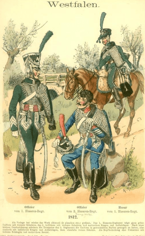 Іл. 2. Офіцер і гусар (у зеленій формі) 1-го Вестфальського гусарського полку, очолюваного генералом В. фон Гаммерштайном: https://de.wikipedia.org