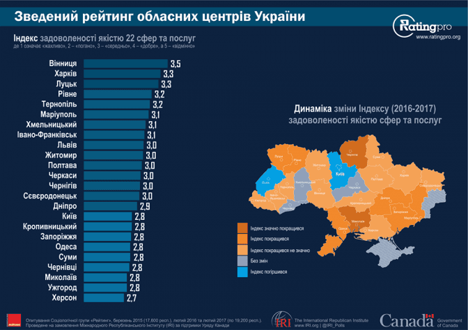 Згідно з результатами дослідження соціологічної групи «Рейтинг», Львів посів дев’яте місце серед обласних центрів, поступившись Вінниці, Рівному, Луцьку, Тернополю, Харкову й навіть Маріуполю, який обласним центром не є. Раніше Львів посідав у цьому рейтингу третє місце. Чи треба львів’янам ображатись на такі результати, які висновки слід із них зробити міській владі? Коментує заступник мера Львова з питань розвитку Андрій Москаленко.