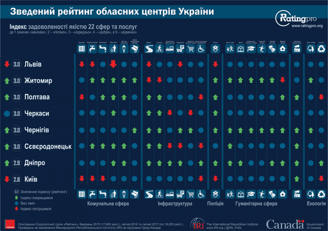 Дослідження групи «Рейтинг» включає індекс задоволеності якістю 22-х сфер міста. Львів’яни не задоволені, наприклад, поліцією, але вона не підпорядкована місцевому самоврядуванню. Є також незадоволення комунальною сферою. Тут ми вирішуємо проблеми поетапно: саме такий підхід сформульований у програмі «Львів 2020».