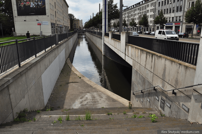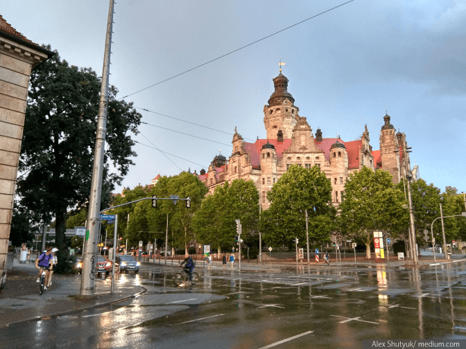 Дощ покапав та пройшов, жодних озер та підтоплень. Причому трамваї навіть під час зливи не припиняли рух. Однією з причин цього є те, що Лейпциг роками працює над відновленням системи каналів, які якраз і слугують для збирання та відведення води під час подібних злив та повеней.