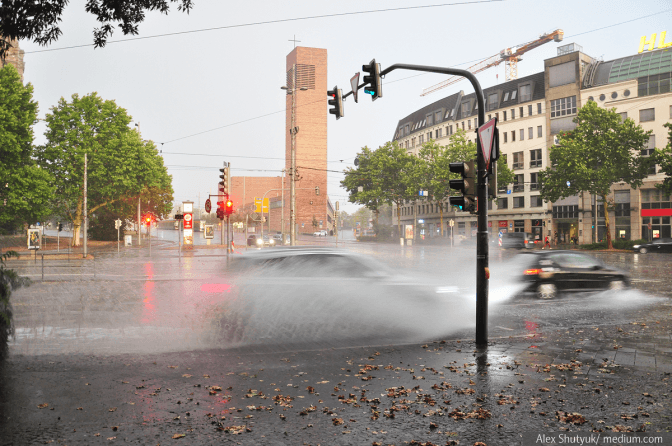 До речі, тиждень тому став свідком подібної тропічної зливи у німецькому Лейпцигу. Усе було, як треба, – потужна стіна дощу, вулицями текли справжні ріки.