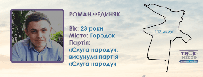 Партія «Слуга народу» висунула у 117-му окрузі свого 23-річного партійця Романа Фединяка, який під час президентської кампанії був довіреною особою Володимира Зеленського на Львівщині.