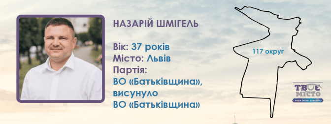 ВО «Батьківщина» у 117-му окрузі висунула кандидатом до парламенту 37-річного партійця Назарія Шмігеля, який із січня цього року керує Франківським осередком партії у Львові.