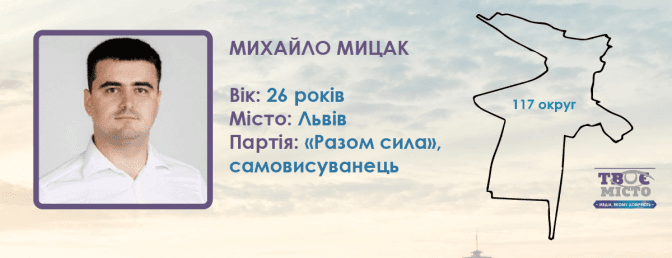 Наступний самовисуванець у 117-му окрузі — 26-річний Михайло Мицак. У його біографії, поданій до ЦВК, вказано, що кандидат — юрисконсульт, працює у ТОВ «Галицький логістичний центр». Михайло Мицак також є членом партії «Разом сила», засновником якої є Олег Ярошевич — головний ініціатор акцій власників «євроблях», голова ГО «Авто євро сила».